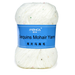 Для праздничных, привлекательных вещей и домашнего декора – пряжа с пайетками. Она примечательна наличием блесток – чешуек круглой формы или пластинок с отверстием в центре, в которое продета нить, это и есть пайетки. Легкие маленькие декоративные элементы, которые способны преобразить любую вещь.